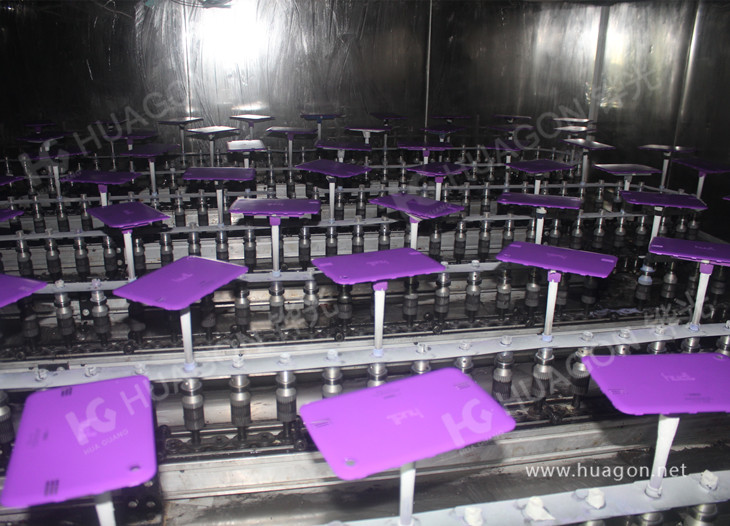 上料-手動(dòng)靜電除塵-素材預(yù)熱-自動(dòng)靜電除塵-自動(dòng)底漆噴涂-表干-自動(dòng)面漆噴涂-靜置-烘烤-冷卻-下料