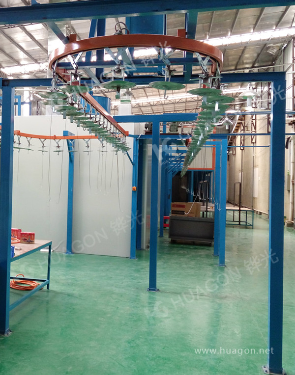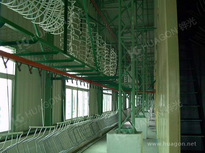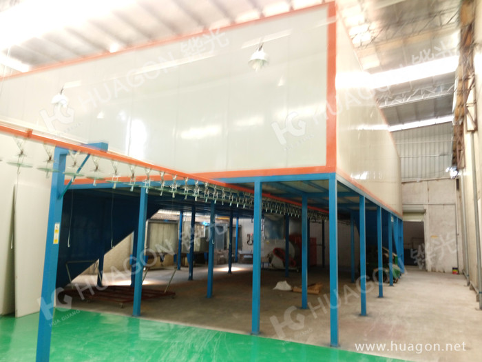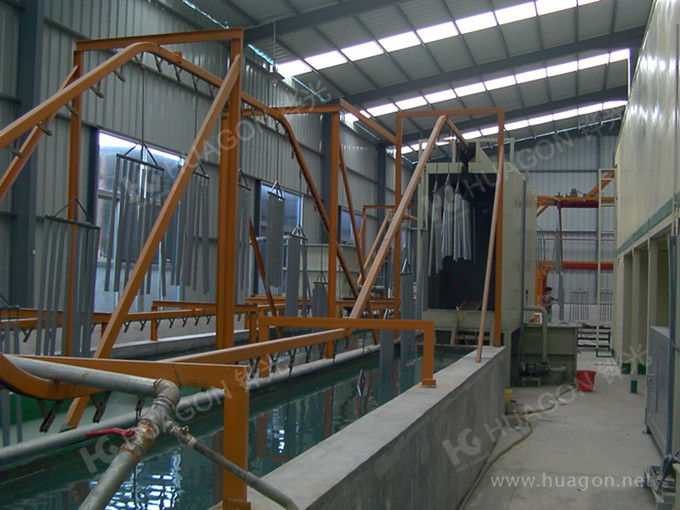 上料-預(yù)脫脂-強(qiáng)制脫脂-表調(diào)-磷化-噴淋-脫水-多任務(wù)站手動(dòng)/自動(dòng)噴涂-靜置-烘烤-冷卻-下料